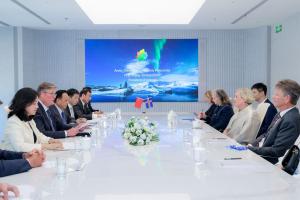 During her visit, President Tómasdóttir met with Haukur Hardarson, Founder and Chairman of Arctic Green Energy, and Hou Qijun, Chairman of Sinopec Group, at the Arctic Green Energy office in Beijing. The meeting celebrated two decades of successful partnership and explored new opportunities for cooperation.